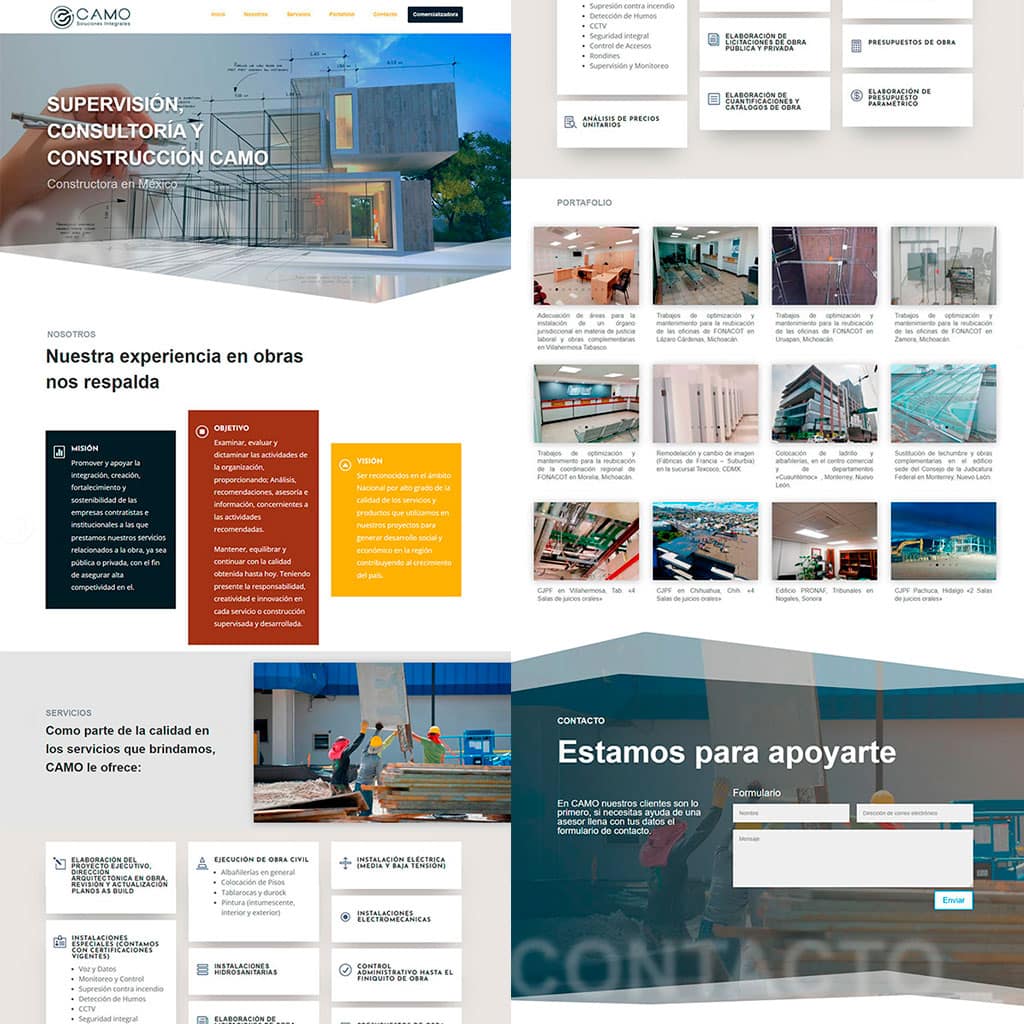 Resultado: Una vitrina digital moderna que conecta la visión arquitectónica de Camo Construcción con su presencia física, facilitando el cierre de negocios y la confianza del cliente.